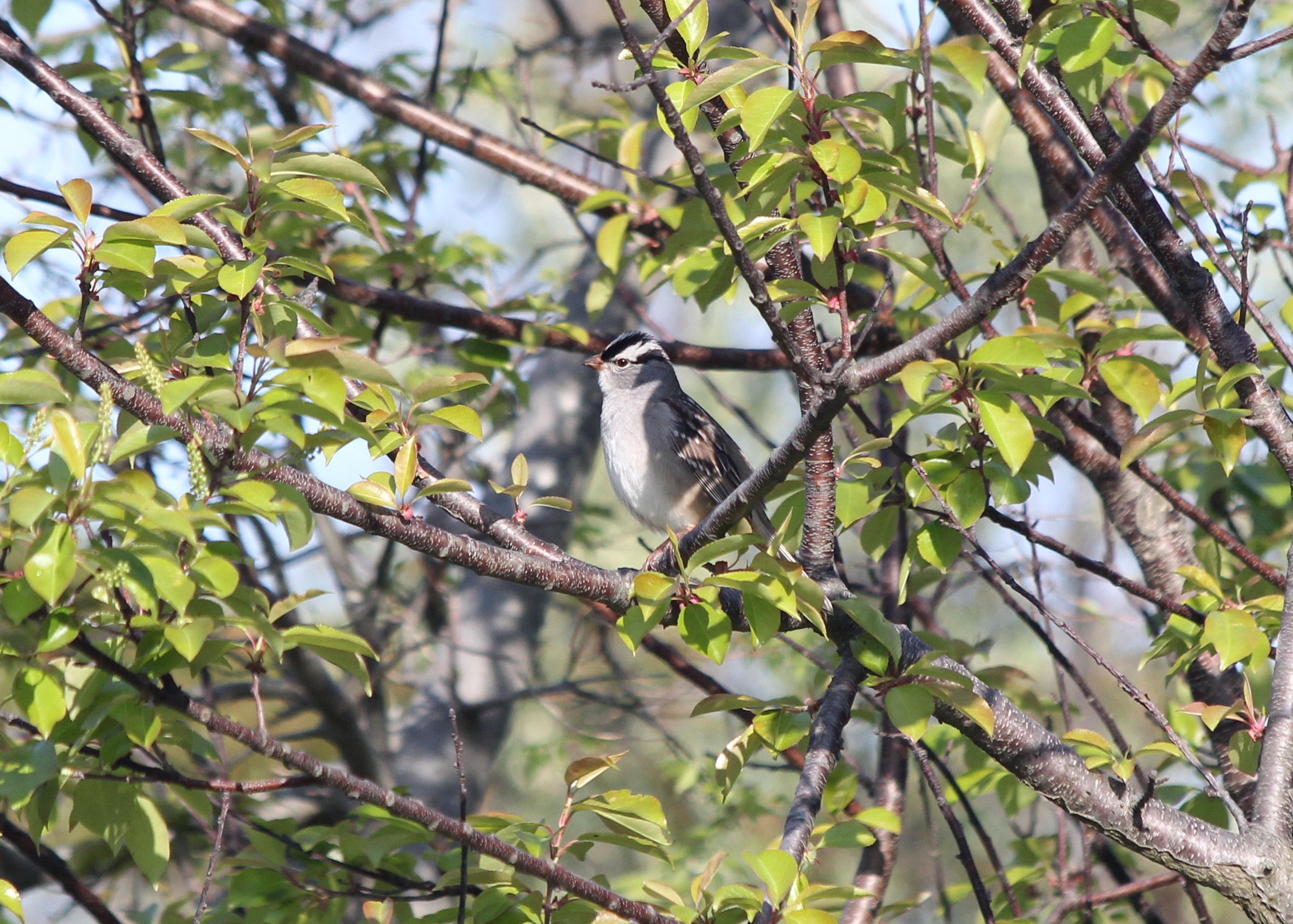 We got a quick glance at what appeared to be a new Warbler for us, a yellow bird with a conspicuous black cap. We looked it up and deduced it must be a Wilson’s Warbler LL, although the guide book said they were uncommon in the eastern US. We ran into another birder who told us he just saw a Wilson’s, and as we stood on the dune, surrounded by flowering white bushes, a pair of Wilson’s appeared, flying around us and chasing each other into the shrubs.